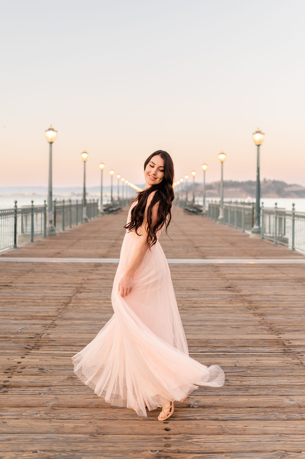 Next, we went to Pier 7 to take some more photos. We did not expect there to be so much traffic getting there from Crissy Field, so we had limited time at Pier 7. Luckily, it was a gorgeous sunset that night so they turned out stunning! Kaelyn wore a Morning Lavender dress that I have in my client closet and it looked so good on her! Here are some photos from Pier 7!