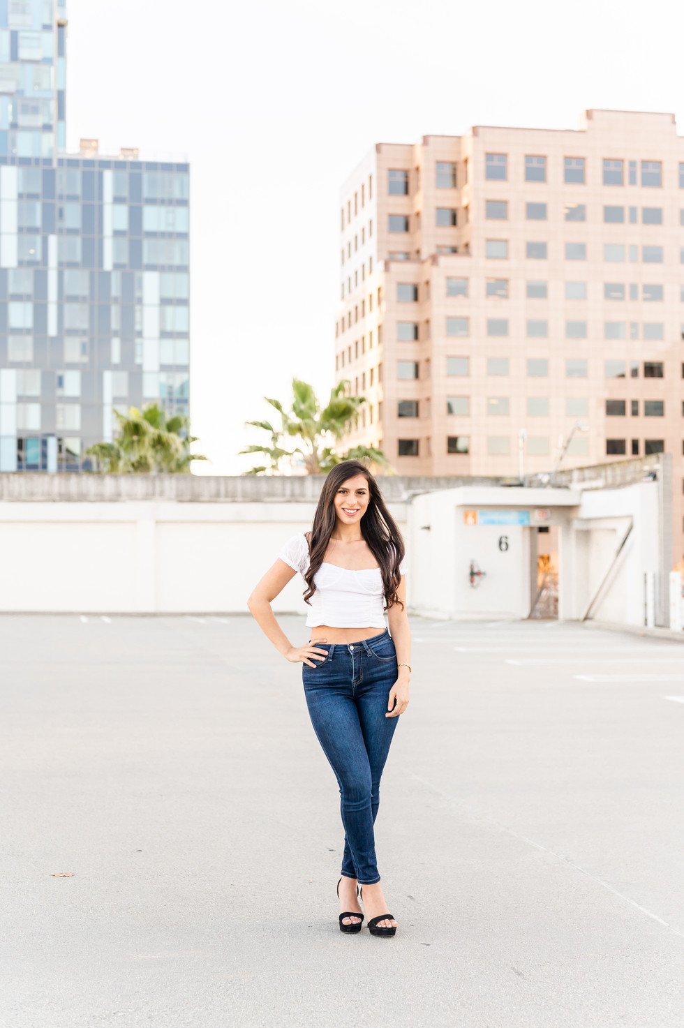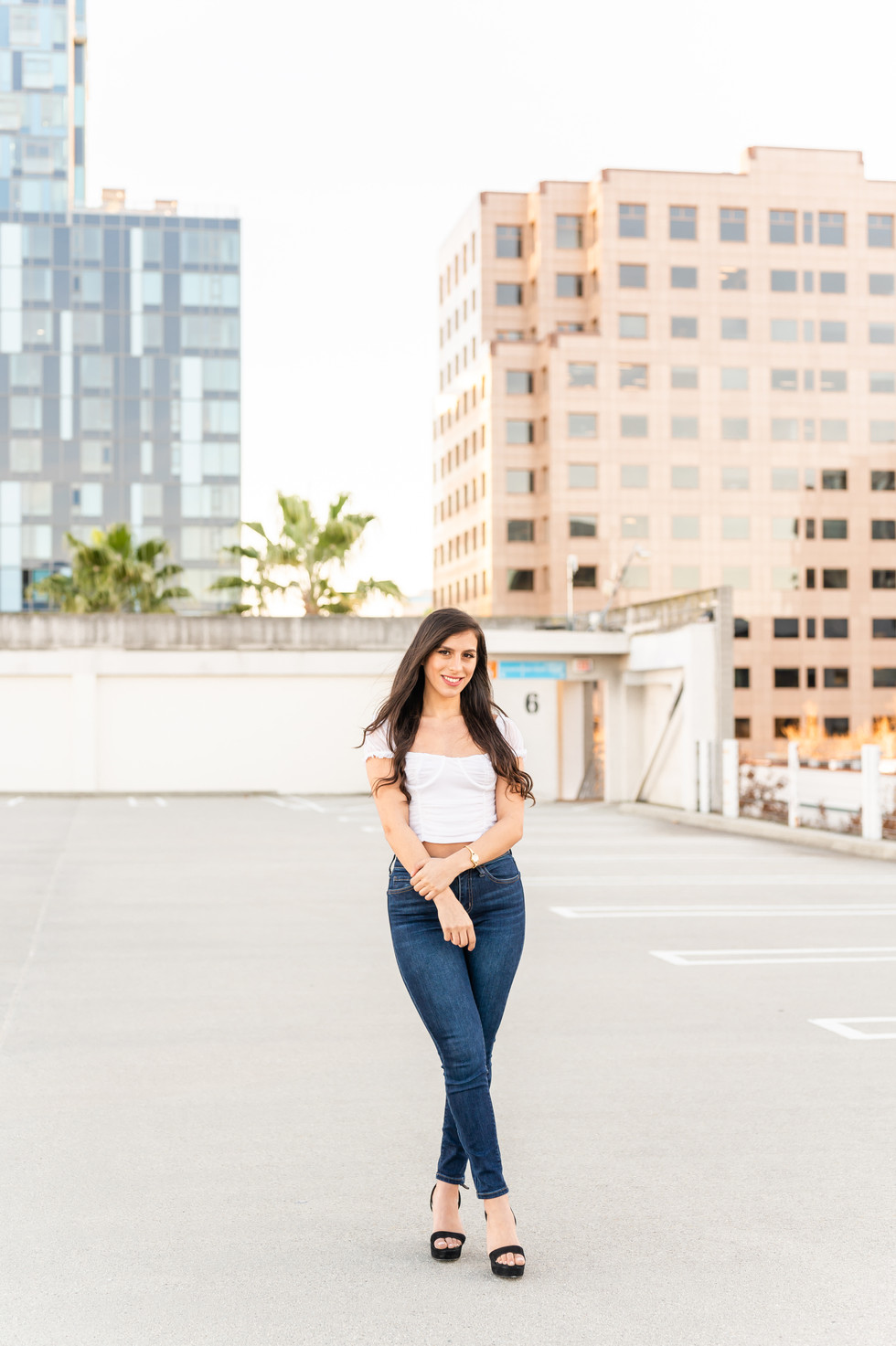 I've previously photographed Nelly at Cal State East Bay (click here to see the photos from that session!) and it was so fun to see her and try out a new spot I hadn't shot at before! I was worried that there might be a lot of people there taking photos and cars parked on the roof, but thankfully we had the whole roof to ourselves!